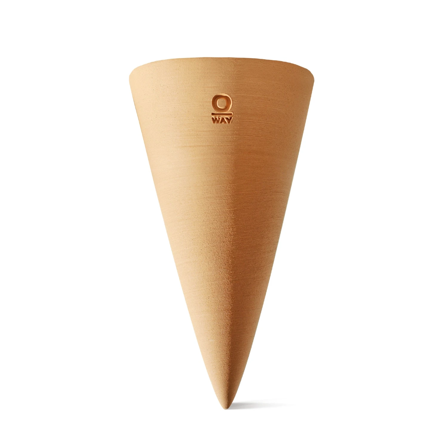Designed by Artigiano Oway and made at km 0 by Italian master potters to gradually transport water and nutrients to the plants, reusing glass bottles.