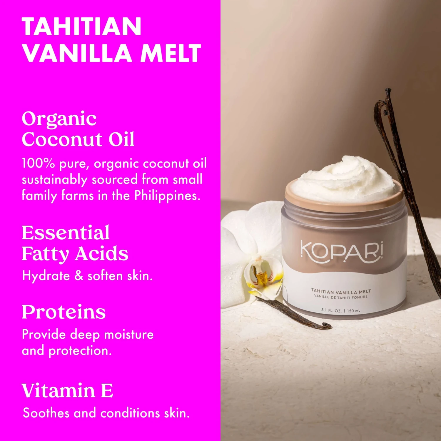 Say so long to synthetic shaving creams and gels. Massage Coconut Melt onto dry or damp legs to achieve a silky shave and ultra-soft skin.